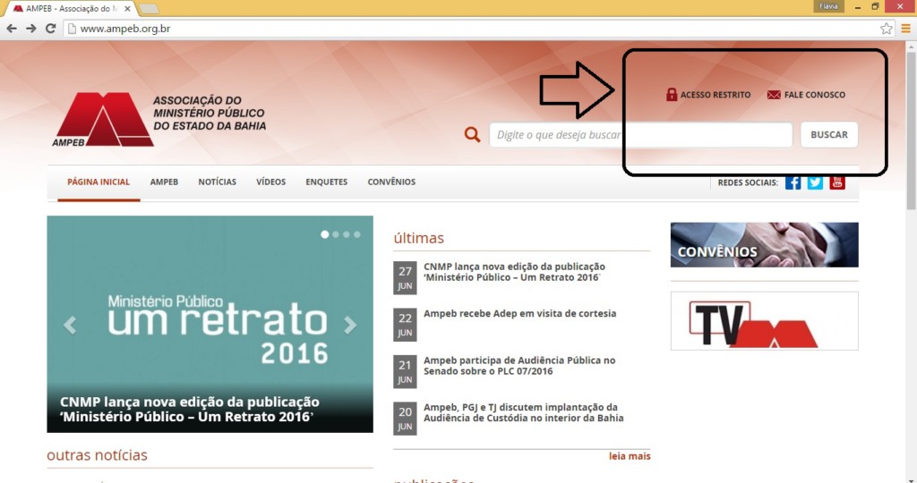 Caso não consiga fazer o login, pode entrar em contato com o consultor de tecnologia da Ampeb, Roberto Rander, pelo e-mail rander@randernet.com.br ou pelo telefone 71 98196-5001.