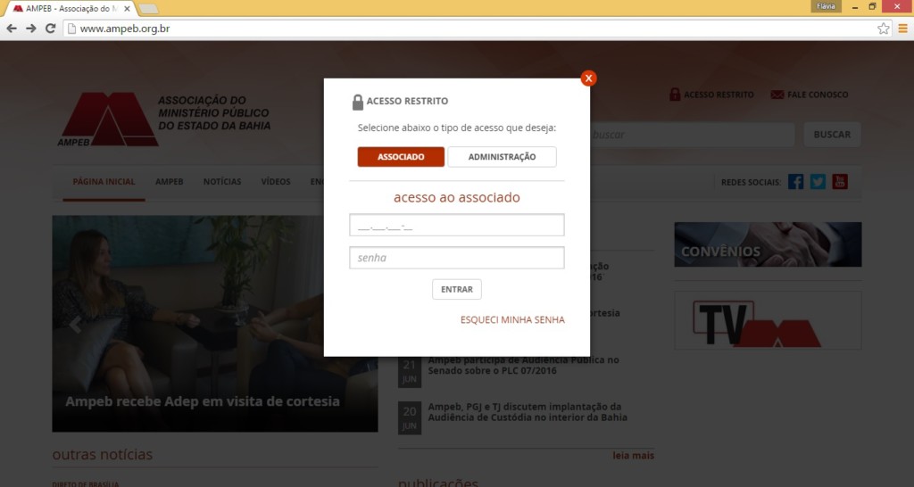 Para acessar os vídeos, o associado deve entrar na área restrita, localizada no topo da página, à direita, com seu CPF e senha. Caso tenha esquecido a senha, o usuário deve clicar na opção “ESQUECI MINHA SENHA” para redefinir sua chave de segurança.