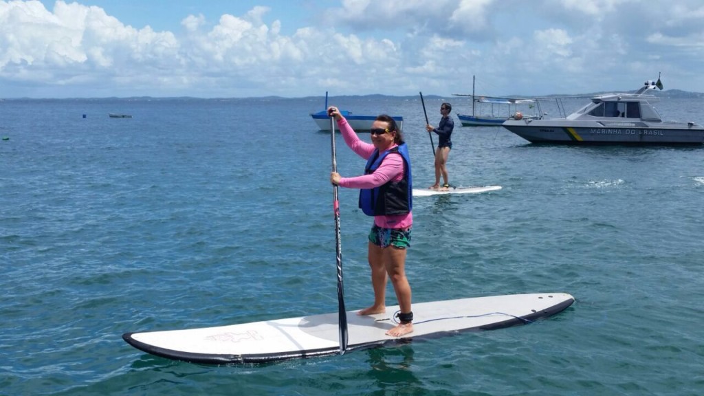 este sábado, dia 16, foram iniciadas aulas de Stand Up Paddle no Porto da Barra para os associados. A prática esportiva, oferecida pela Ampeb, acontecerá sempre aos sábados, com turmas às 8h40 e 10h, com duração de uma hora. As turmas podem ter até cinco alunos cada. Oito associados se inscreveram para participar das primeiras aulas. O promotor de Justiça Thyêgo de Oliveira Matos, diretor de esportes da Associação, idealizador do projeto e organizador da atividade, também marcou presença no Porto da Barra.