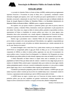 A nota ratifica o papel do MP na defesa do interesse público e afirma seu apoio irrestrito aos promotores de Justiça que vêm cumprindo seu dever constitucional de combater a corrupção, “de forma altiva, eficiente e independente”.