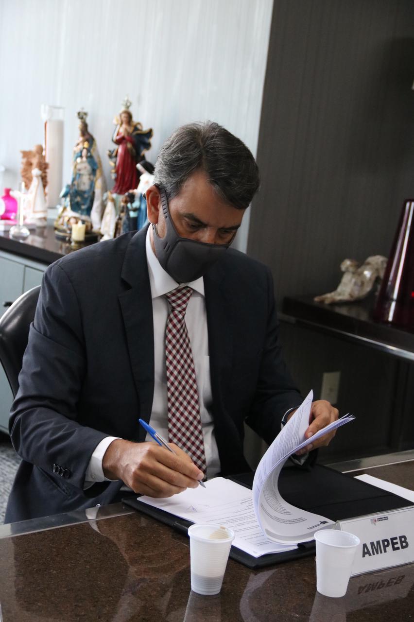 O presidente da Ampeb, Adriano Assis, participou, nesta segunda-feira (14/06), da assinatura do termo de cooperação entre o Ministério Público do Estado da Bahia (MPBA), o SEBRAE local, com intervenção da entidade de classe, que visa prestar apoio ao empresariado baiano, viabilizando o fomento à atuação dos pequenos negócios locais como prestadores/fornecedores dos entes públicos.