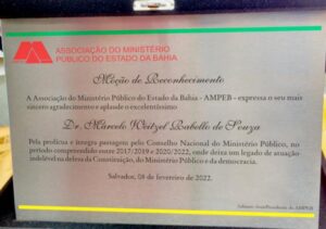 “O trabalho realizado pelo conselheiro merece todo o reconhecimento. No CNMP, ele sempre agiu comprometido com a Constituição e com o Ministério Público”, destacou o presidente da Ampeb, Adriano Assis.