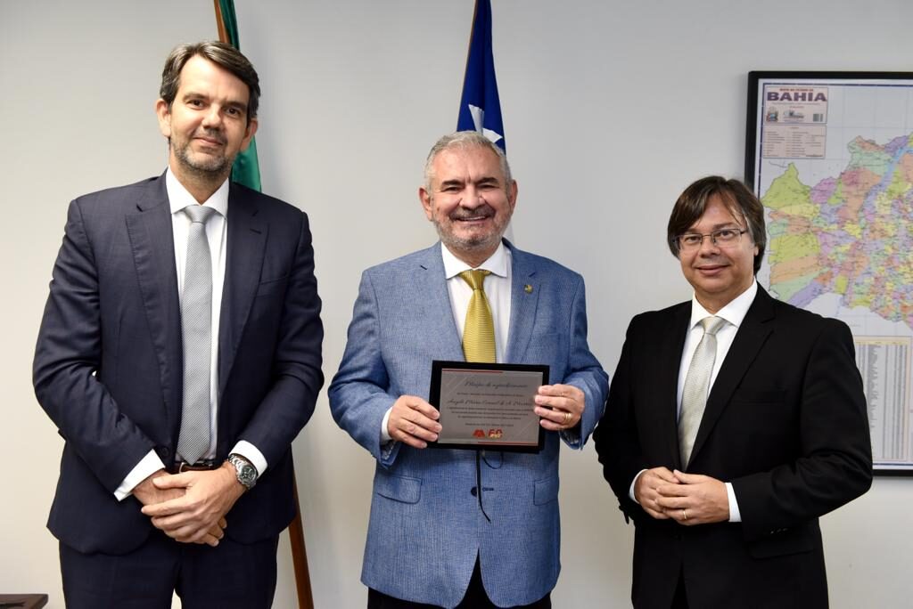 O presidente da AMPEB, Marcelo Miranda, acompanhou demandas de associados em sessão plenária do CNMP, nesta terça-feira (22). Ele também se reuniu com o senador Ângelo Coronel e, ao lado do ex-presidente Adriano Assis e do presidente da AL-BA, Adolfo Menezes, entregou uma placa de agradecimento pelo apoio às pautas do Ministério Público no Congresso.