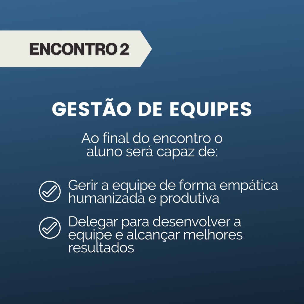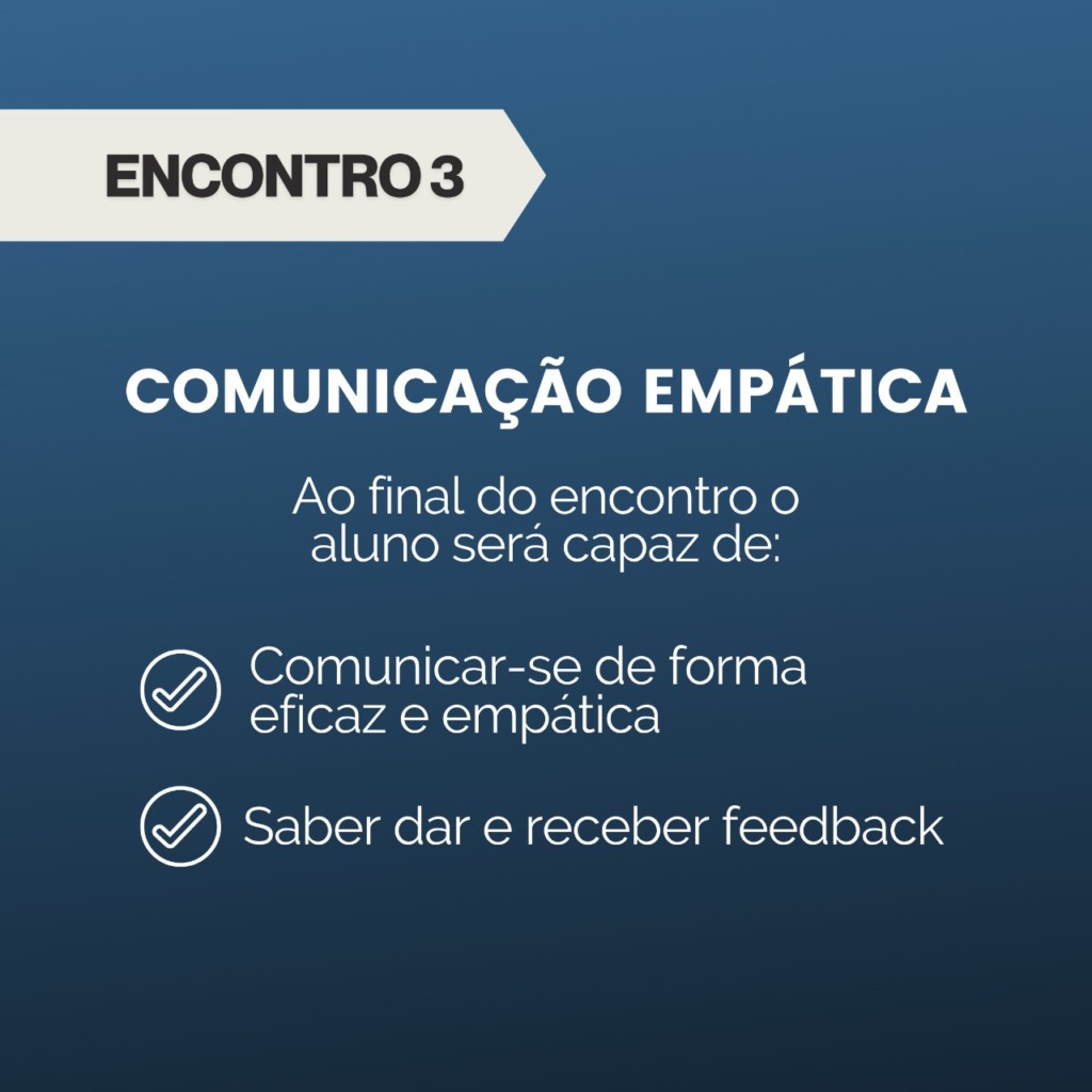 O curso é dividido em quatro encontros: Autogestão (1); Gestão de equipes (2); Comunicação Empática (3) e Gestão em Tempos de Pandemia (4) e possui 60 vagas. Segundo Cristina, no trabalho, o que une é a humanidade, o olhar para o outro, percebendo as próprias necessidades e de quem está em volta, na tentativa de resolver problemas e angústias dos gestores.