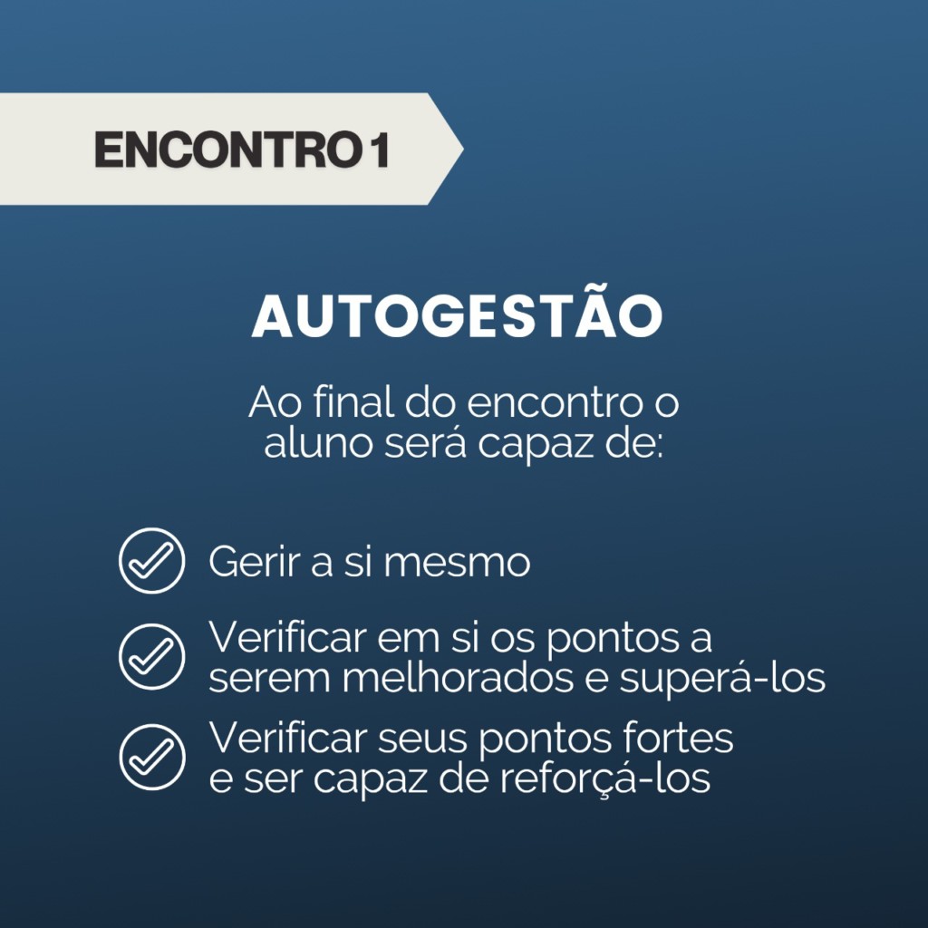 Um dos objetivos do trabalho é ser um fortalecedor para o autoconhecimento e auto-gestão, identificando os pontos fortes e as fragilidades. “É uma proposta transformadora e aplicável na prática”, explicou.