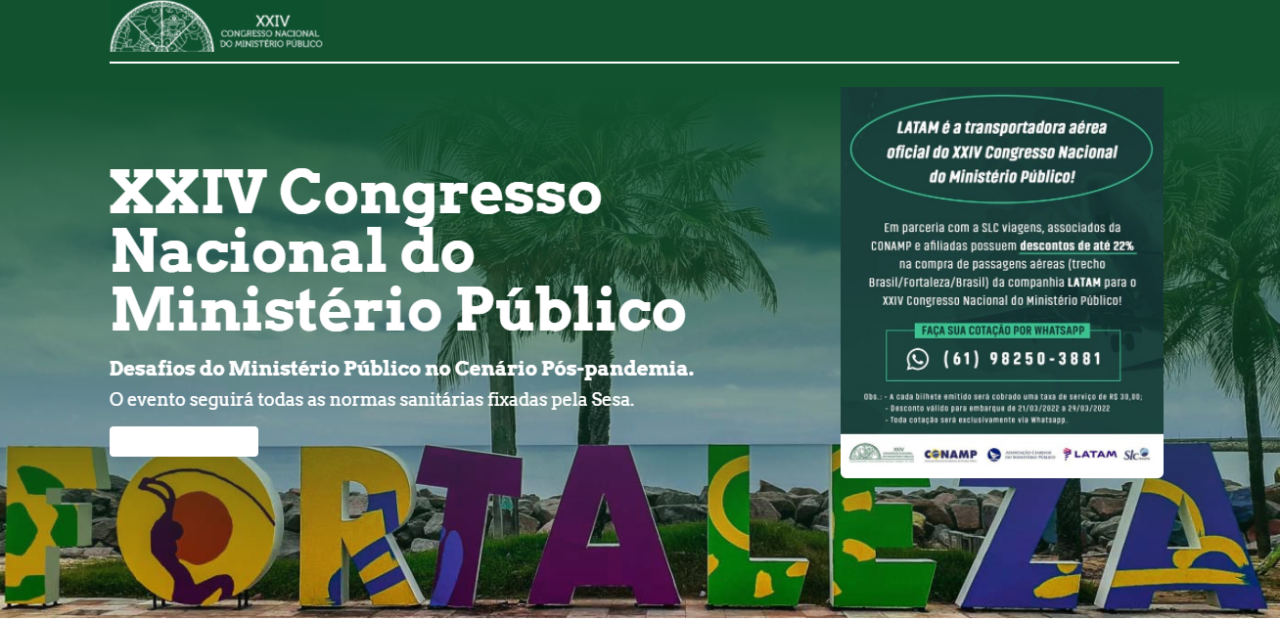 CONGRESSO – Promovido pela Conamp em parceria com associações do Nordeste, o congresso reunirá, além de membros do MP, acadêmicos e profissionais das carreiras jurídicas e afins de todas as regiões do país. O tema desta edição levará o título “Ministério Público: um olhar para o futuro”. No hotsite acmp-ce.org.br/congresso é possível acessar todas as informações sobre hospedagem e a programação do evento.
