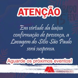 ATENÇÃO – Lavagem do Sítio São Paulo é cancelada