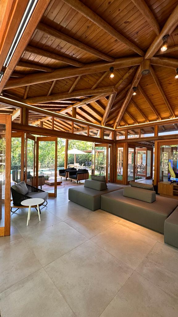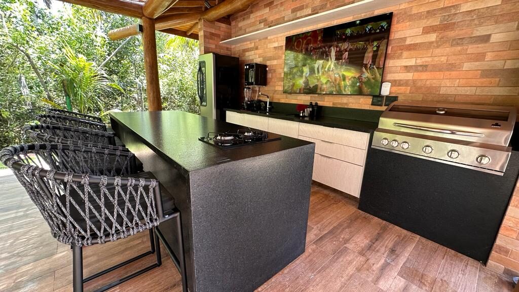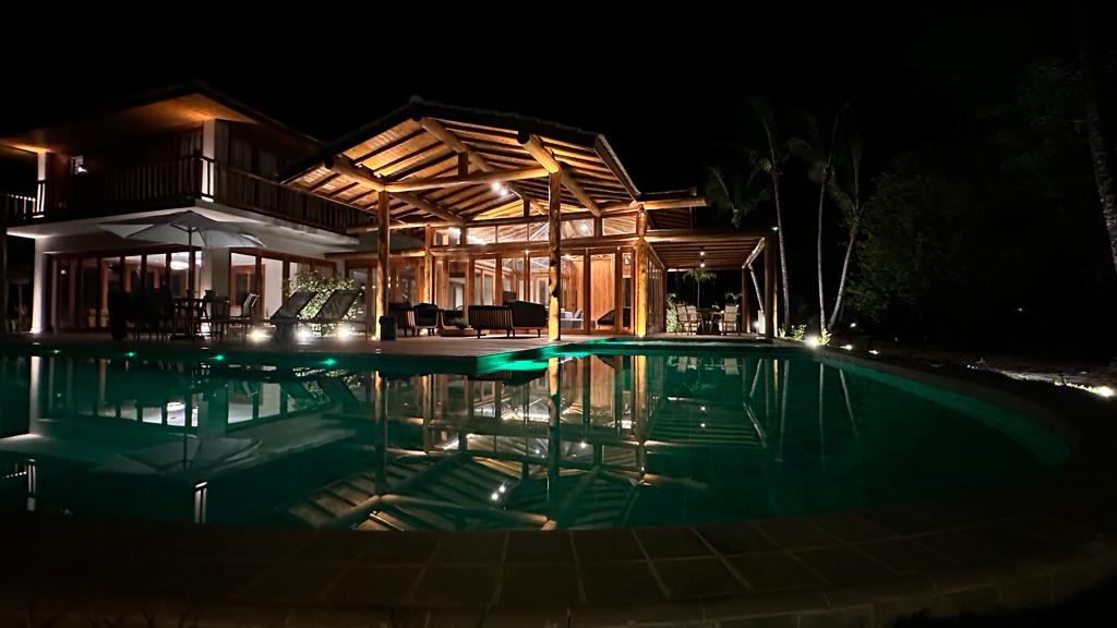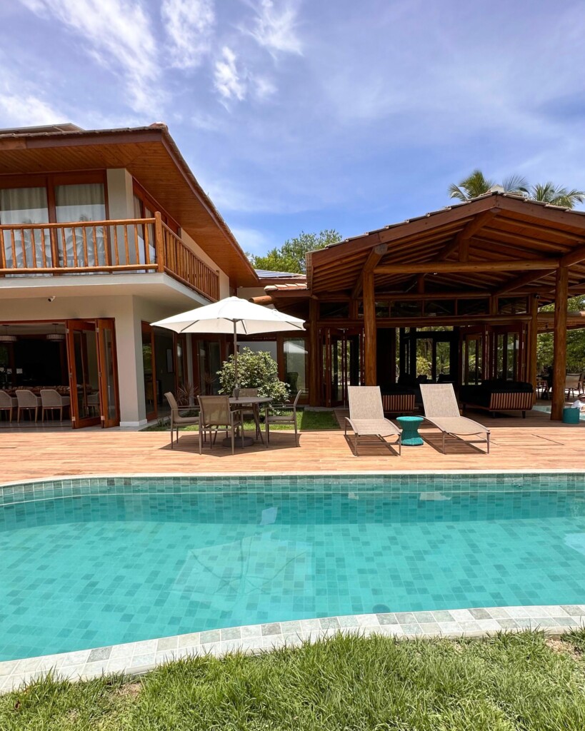 Em uma área de 1000 m², a Bahia Felicità conta com uma arquitetura contemporânea e dispõe de living, lounge e sala de jantar integrados, espaço gourmet, piscina, hidromassagem aquecida, seis suítes, lavabo, dependência para quatro funcionários, mesa para futmesa, staff exclusivo e muito mais para que os hóspedes tenham uma experiência completa.