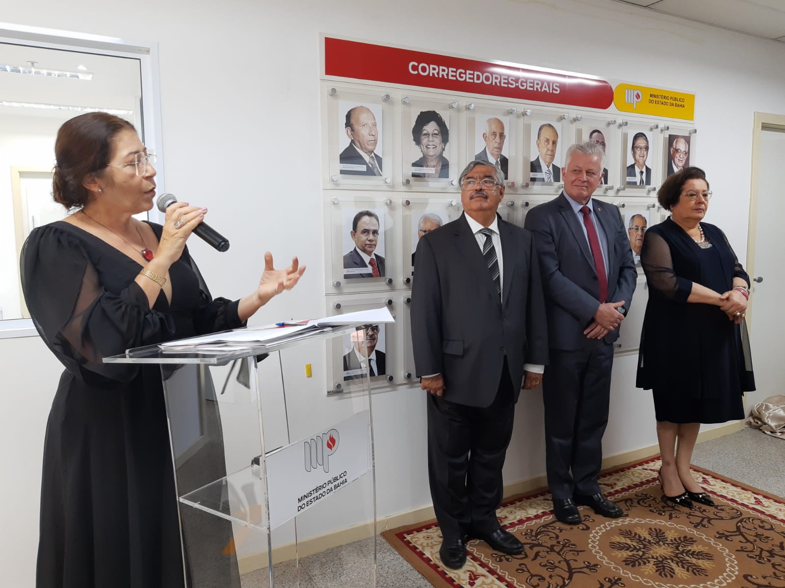 Antes da posse da corregedora-geral, houve a inauguração da nova galeria de ex-corregedores-gerais do MP-BA e a aposição da foto do ex-corregedor-geral Zuval Ferreira. Ele esteve à frente do órgão entre 2018 e 2020.