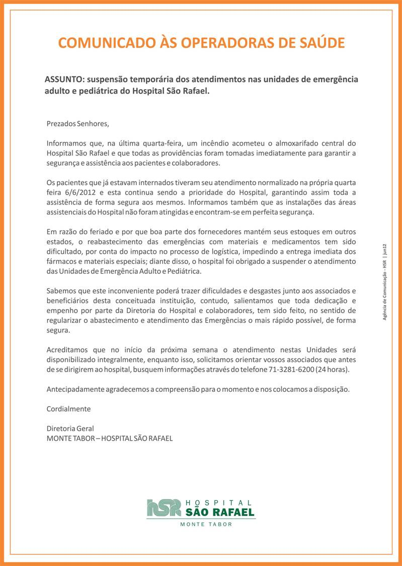 Comunicado Hospital São Rafael