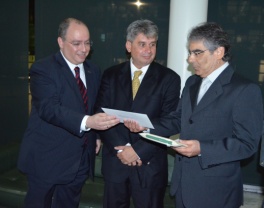 Ayres Britto (dir.) com os presidentes da CONAMP (esq.) e do CNPG (centro)