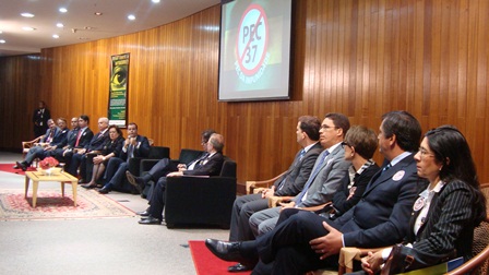 As primeiras palavras foram do ministro Ayres Brito, que comparou o número da PEC (37) ao seu artigo correlato na Constituição Federal, que, num paradoxo ao que vem sendo contestado, define os crimes relacionados a atos de improbidade e suas penas. “Este artigo 37 vem colocar a importância do MP na defesa da ordem jurídica. Para ter órgão de controle, é preciso fiscalizar. E fiscalizar é ver, apurar, investigar. Nem toda investigação se faz através de inquérito. Esta PEC é um atentado à ordem jurídica” .