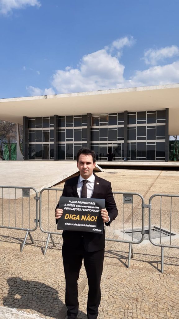 O vice-presidente da Ampeb, Tiago Quadros, acompanhou a movimentação dos membros do MP e Magistratura contra o projeto de abuso de autoridade. No período da manhã, houve reunião na sede da CONAMP sobre o tema. À tarde, os manifestantes seguiram para o Palácio do Planalto para ato público.  “O ato ocorrido na presente data tem o propósito de alertar a sociedade e o presidente Bolsonaro acerca do real propósito do projeto de lei que diz criminalizar o abuso de autoridade, mas que, na prática, busca silenciar as instituições. Foi verbalizado em alto e bom som, em frente ao palácio do Planalto, a necessidade de que tal projeto seja vetado”, declarou Tiago Quadros.