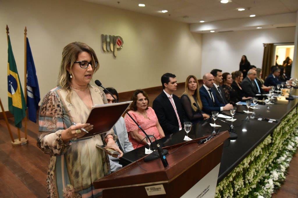 Ainda em seu discurso, enalteceu a dedicação de Janina Schuenck à frente da Ampeb, destacando que a promotora de Justiça esteve presente, incansavelmente, em todos os momentos cruciais para a instituição e, consequentemente, para os associados durante os seus dois mandatos. “Testemunhamos a sua conduta, Janina, sempre guiada pelas melhores preocupações em bem representar e gerir a nossa associação, em proteger os associados ainda em exercício funcional e os já em merecido descanso de forma indistinta, e em ascender a nossa instituição, aqui e em Brasília, ao seu mais alto patamar.”