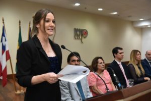 A ex-presidente da Ampeb, que fez a passagem do cargo ao promotor de Justiça Adriano Assis, falou da difícil tarefa de descrever, em poucas palavras, o quão profundamente engrandecedora foi a experiência de contribuir à classe, de se doar para vivenciar suas lutas e desafios, nos quatro anos em que esteve à frente da entidade. No seu discurso, ela destacou os inúmeros ataques ao Ministério Público, travestidos de projetos de lei ou propostas de emenda à Constituição, alguns alvejando atribuições e prerrogativas, a quais asseguram atuação com destemor e independência, outros com foco em desestruturar a carreira e torná-la desinteressante aos bons quadros. “Posso afirmar que temos, entre nós, os melhores quadros, cidadãos vocacionados à defesa do interesse público e de todas as funções confiadas ao MP pelo Constituinte”, disse.