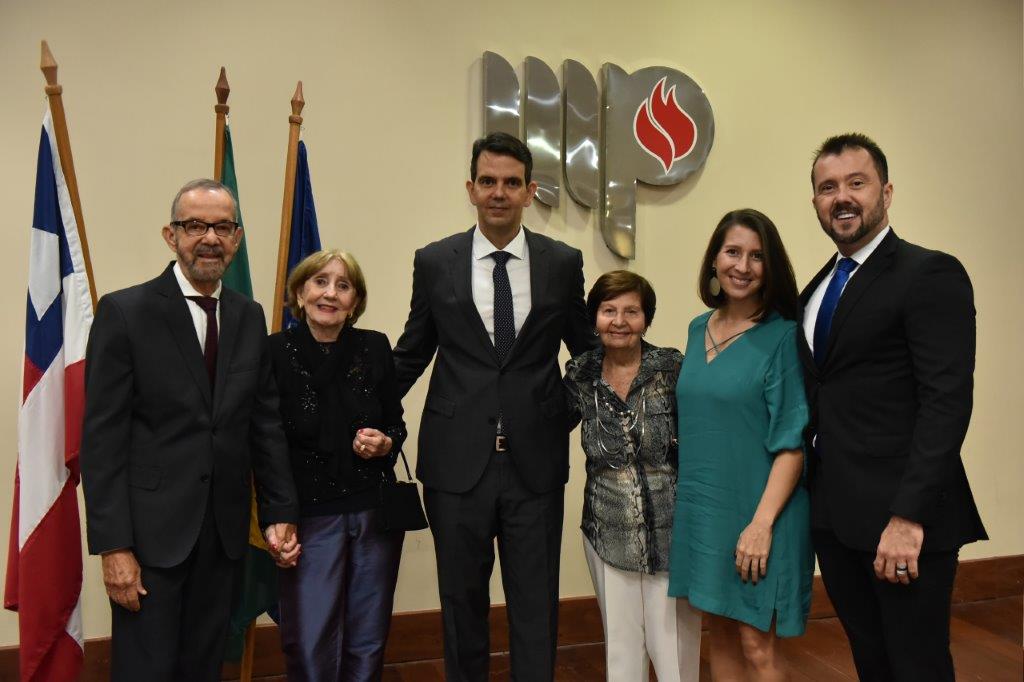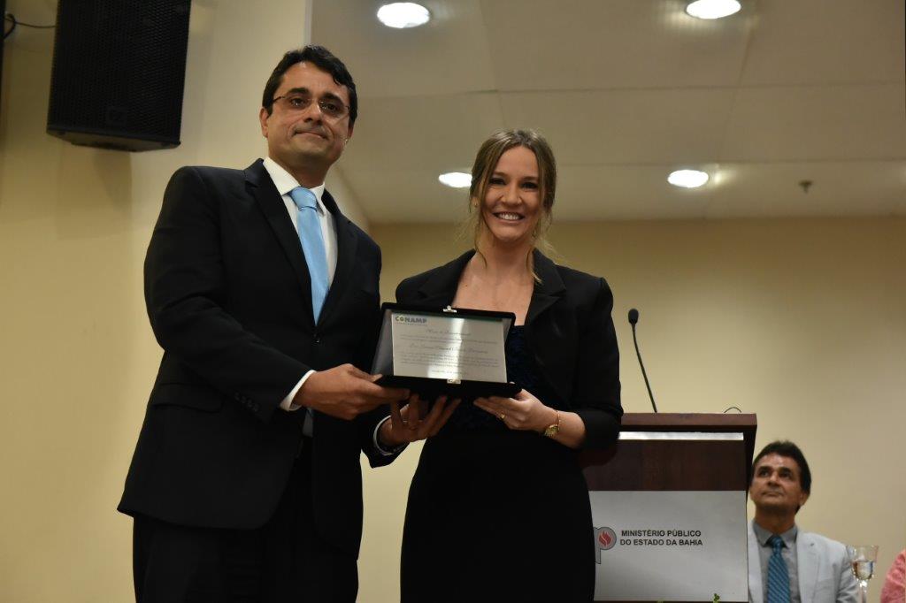 No início da cerimônia, Patrícia Kathy Medrado, secretária-geral da gestão passada, convocou os membros do MP-BA, o promotor de Justiça e ex-presidente da AMPEB, Alexandre Soares Cruz, e o procurador de Justiça, que foi diretor e Conselheiro Consultivo da AMPEB, Paulo Marcelo de Santana Costa, para homenageá-los com a comenda de honra ao mérito, por terem contribuído, com dedicação e atenção à vontade da classe, para o aperfeiçoamento da carreira dos membros do MP baiano. A entrega da medalha e da placa foi feita pelas diretoras sociocultural, Adriana Seijo, e administrativa, Rita Márcia Leite.