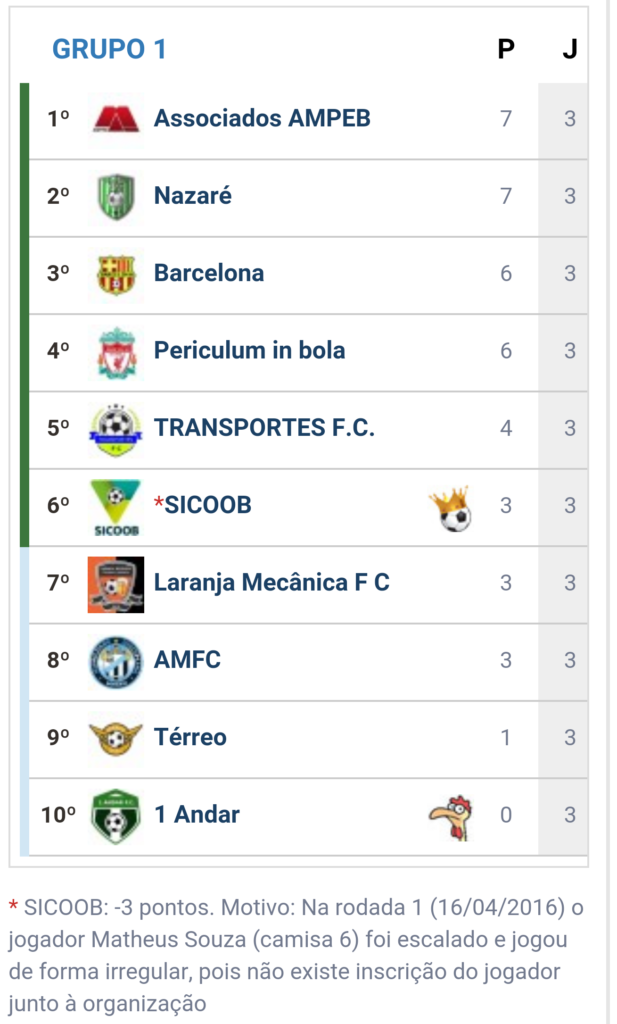 Screenshot_2016-05-16-10-32-46-1Cinco partidas da 3ª rodada do Campeonato de Futebol Society do Ministério Público do Estada da Bahia foram realizadas no último sábado, dia 14/05, no Sítio São Paulo. O time da Ampeb empatou com o Nazaré por 3 x 3 e está em 1º lugar na tabela classificatória.