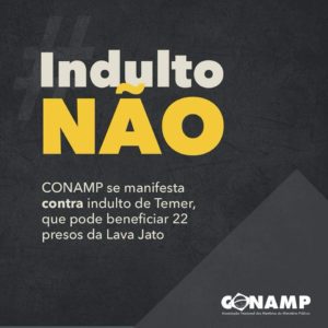 A CONAMP, entidade que representa procuradores e promotores de Justiça de todos o Brasil, faz coro à sociedade e se manifesta contra o indulto natalino do presidente Michel Temer, que, se aprovado, concederá perdão de pena a 22 dos 39 presos da Operação #LavaJato. #IndultoNão
