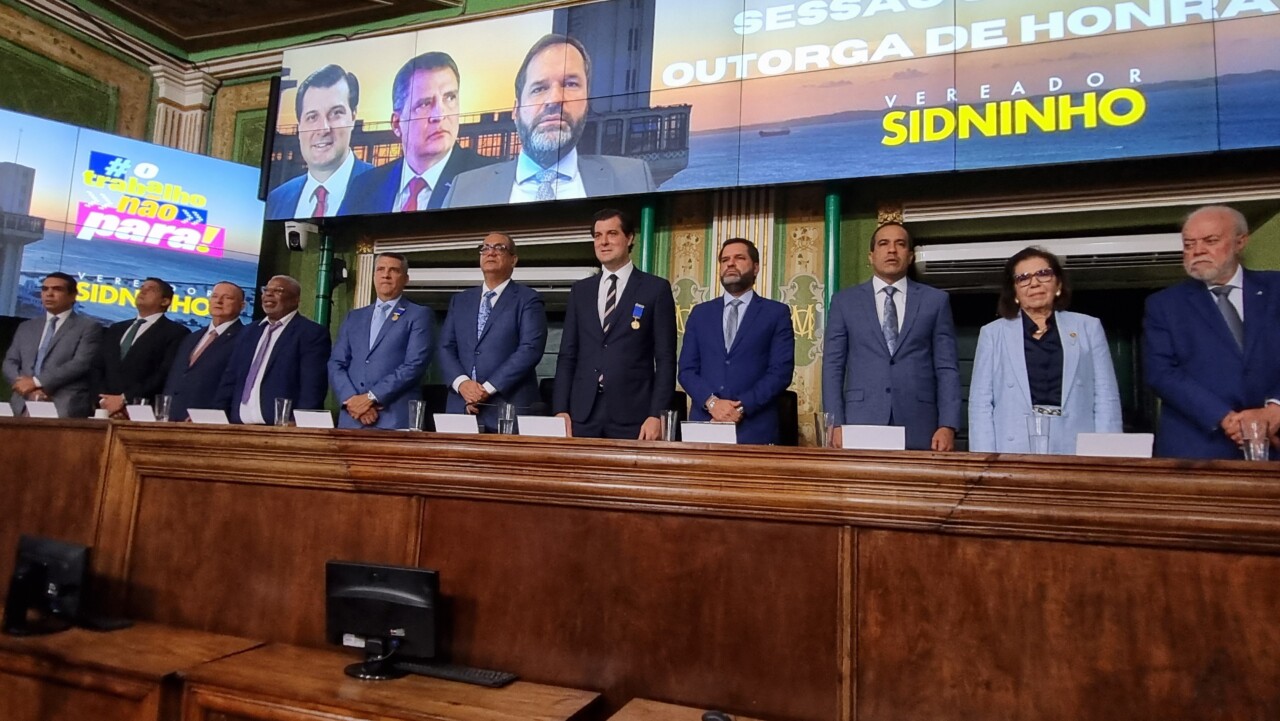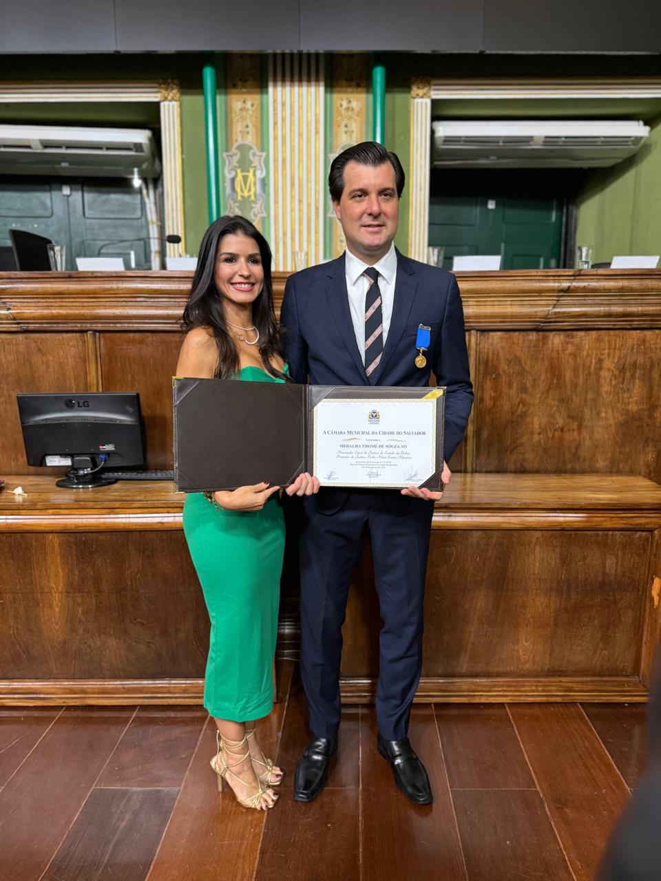O procurador-geral de Justiça da Bahia, Pedro Maia, recebeu, nesta sexta-feira (23), a Medalha Thomé de Souza, outorgada pela Câmara Municipal de Salvador após proposta do vereador Sidninho. Diante de uma plateia lotada de colegas, admiradores e familiares, o homenageado não segurou a emoção ao ser agraciado com a mais alta honraria da Casa.