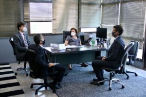 O presidente da Ampeb, Adriano Assis, foi recebido pela procuradora-geral de Justiça do Ministério Público do Estado da Bahia, Norma Cavalcanti, pelo PGJ adjunto, Paulo Marcelo Costa, e pelo chefe de gabinete, Pedro Maia, na sede da instituição ministerial, nesta segunda-feira, dia 24/05. No encontro, foram tratados assuntos de interesse institucional, relacionados a direitos dos associados pendentes de apreciação. Na oportunidade, o presidente convidou a PGJ e sua equipe para a posse da nova diretoria e conselhos fiscal e consultivo, que será realizada na forma virtual, em virtude da pandemia da COVID-19, no dia 11/06, às 10h.