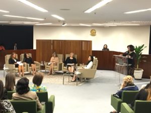 Realizado na sala de Sessões da 2ª Turma do Supremo Tribunal Federal, em Brasília, o evento teve a participação da ministra Rosa Weber, do Supremo Tribunal Federal, da ministra Laurita Vaz, presidente do Superior Tribunal de Justiça, da procuradora-geral da República, Raquel Dodge, além da ministra Grace Mendonça, Advogada-Geral da União e da procuradora-geral Cristina Machado, do Ministério Público junto ao TCU, que dialogaram sobre o tema: “A Mulher e o Poder Estatal”.