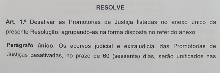 Art. 1º Desativar as Promotorias de Justiça listadas no anexo único da presente Resolução, agrupando-as na forma disposta no referido anexo.