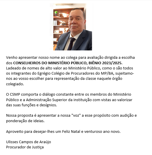 Será realizada nesta quinta-feira (15) a eleição para o Conselho Superior do Ministério Público da Bahia. A votação é secreta e estará disponível das 9h às 16h, tanto presencialmente, na Sala de Sessões do parquet, quanto online, por meio de um link que será enviado para os emails dos membros da instituição.