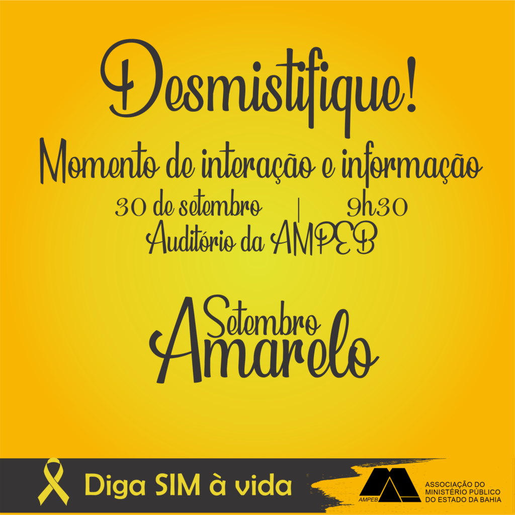 Com o tema “Setembro Amarelo: Rompendo o silêncio e salvando vidas”, os associados e seus dependentes poderão aprender e debater sobre o assunto com especialistas da área. Será servido um café da manhã para os participantes.