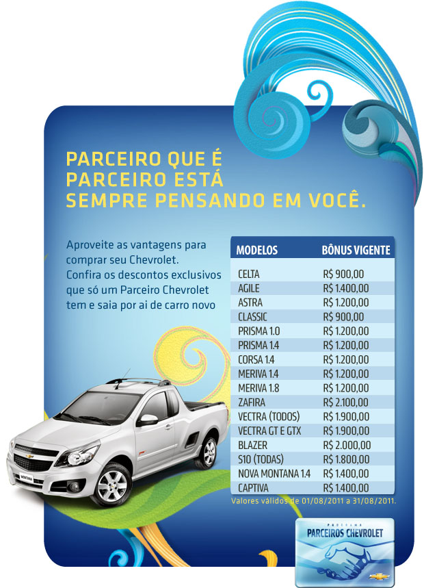 Tabela Chevrolet para o mês de agosto.
