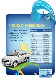 Tabela do Convênio Chevrolet para o mês de Janeiro.