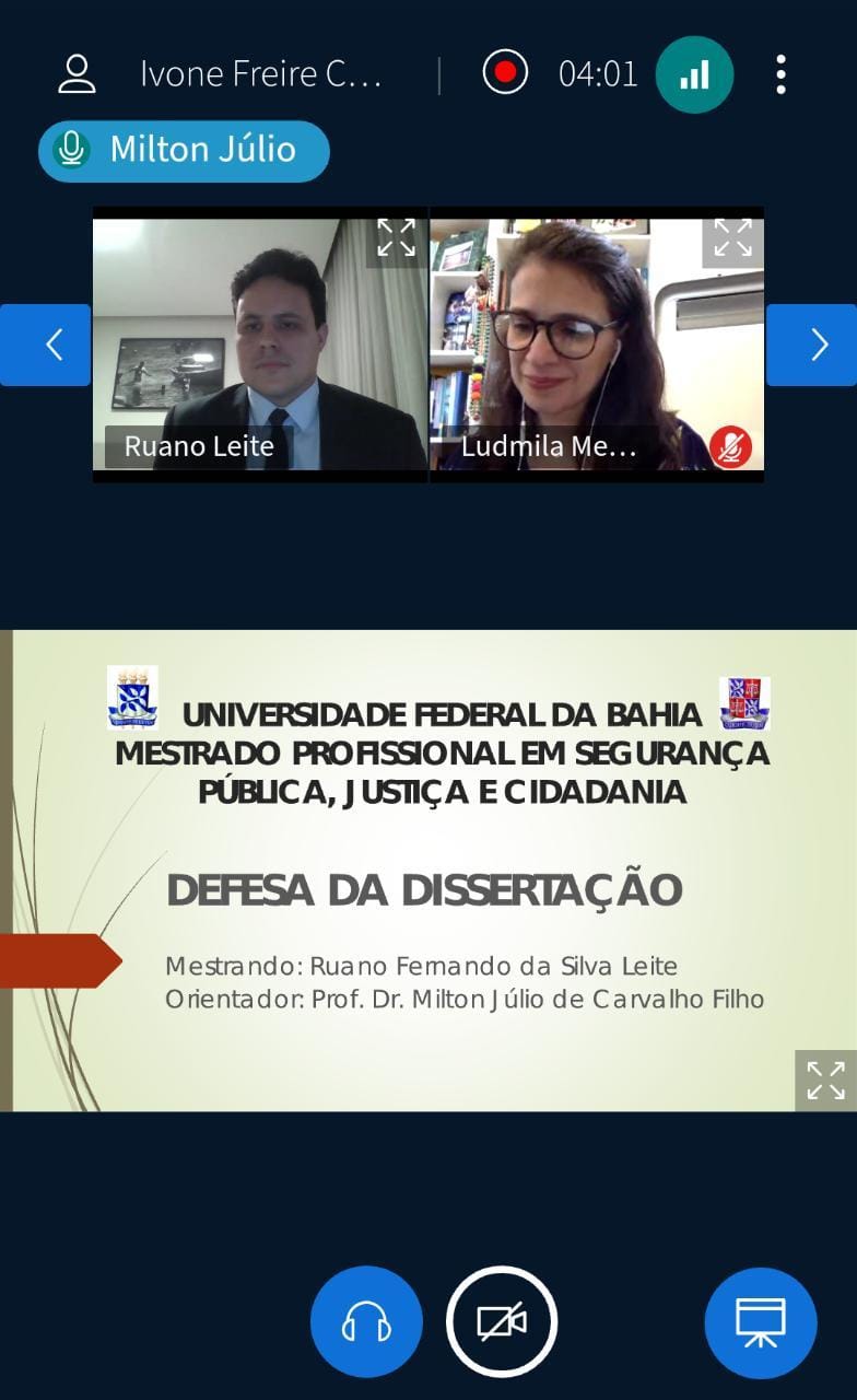 A banca examinadora contou com a participação do procurador de Justiça e ex-corregedor geral do MP baiano, Marco Antônio Chaves. Assim que a dissertação for depositada, o autor irá compartilhar os resultados com toda a instituição.
