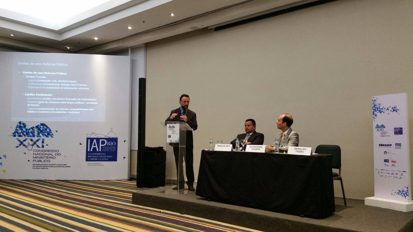 À tarde foi a vez do promotor e ex-presidente da Ampeb, Alexandre Soares Cruz, coordenar o painel intitulado “A reforma política no Brasil: diagnósticos e propostas” apresentado por Marlon Reis (MCCE) e Geraldo Tadeu (IUPERJ e UERJ). A presidente da Ampeb, Janina Schuenck, acompanhou a programação ao longo do dia.