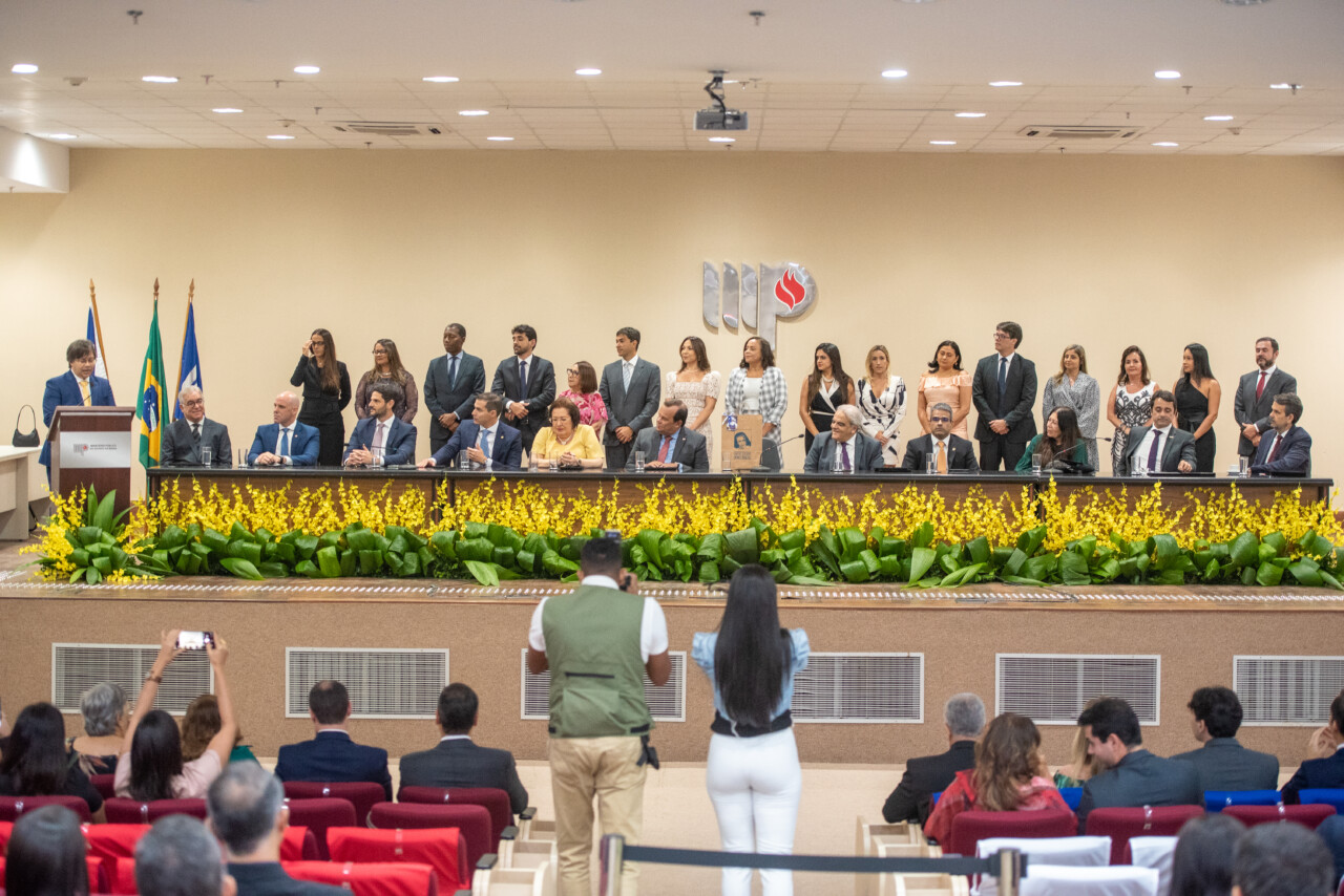 Aplausos, risos, choros, homenagens, chegadas e despedidas. Assim foi a posse da Diretoria e Conselhos Consultivo e Fiscal (Biênio 2023-2025) da AMPEB, realizada nesta sexta-feira (16), na sede do MP-BA, no CAB, em Salvador. Enquanto a gestão liderada pelo promotor Adriano Assis fazia o seu último ato após quatro anos à frente da entidade, o grupo formado pelo promotor Marcelo Miranda assumia o posto aos olhos de um auditório lotado de integrantes dos Poderes Judiciário, Executivo e Legislativo, familiares, amigos e admiradores.