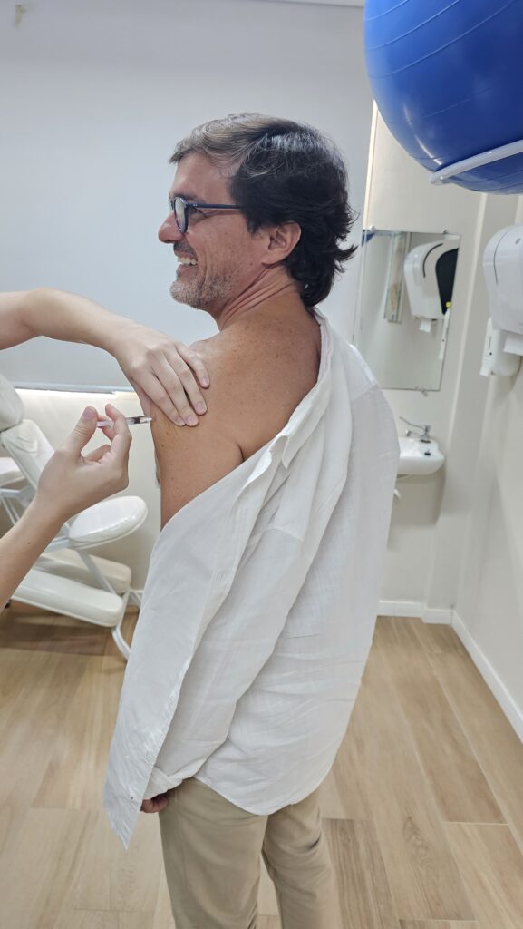 Mais de 100 associados e familiares participaram do primeiro dia de vacinação contra a gripe promovido pela AMPEB, nesta sexta-feira (10), na sede da entidade. Ao longo do dia, o fluxo constante de pessoas refletiu não apenas a adesão à campanha, mas um hábito já consolidado entre a classe: o de transformar prevenção em prioridade.